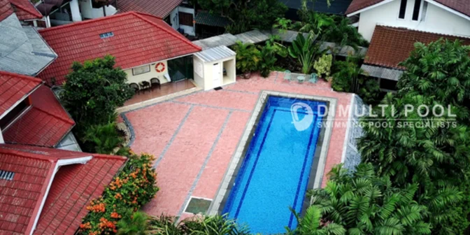 Di sini kami akan berikan contoh desain dari proyek kontraktor kolam renang Dimulti Pool di kolam milik Bambang. Lokasi kolam renang ini ada di Pondok Labu, Jakarta Selatan.