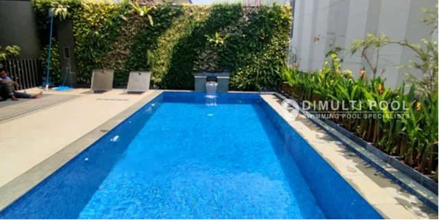 Proyek ini dikerjakan tim kontraktor kolam renang Dimulti Pool pada tahun 2023 lalu. Jadi, kolam ini masih sangat fresh untuk dijadikan percontohan.