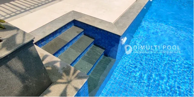 Selain tangga stainless steel, anda juga bisa membuat tangga konstruksi untuk akses masuk kolam renang. Anda bisa menempatkan tangga ini dimanapun sesuka hati anda.
